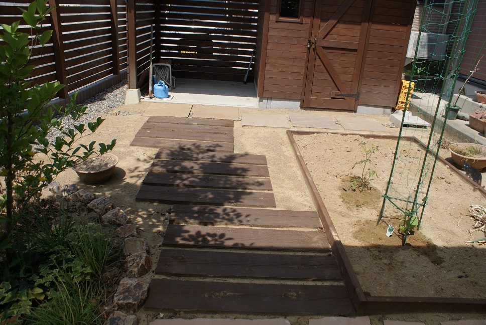 菜園をしっかりと作って庭のレイアウトも使いやすいようプランしました(あとはお客様が植え込んでくれてます)