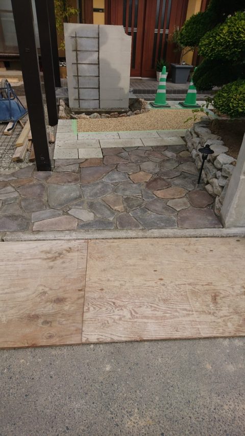 今回のH邸は和風住宅と庭園があるお宅ですが、やはり玄関に近いところに二台の駐車場を確保したいとのことから弊社にご依頼をいただきましたが、近隣に当社で施工したお宅が二軒ありますので、毎日のワンちゃんの散歩の際にうちのお客様に聞いての当社へのご依頼となりました。