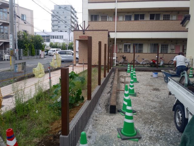 ということで施工が始まりまずは北側の境界と駐車場からです。
