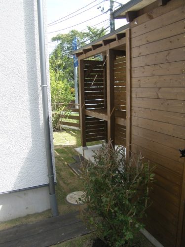 北東側は扉をつけ出入り可能としました(プロパンの交換のため)