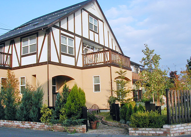 こちらのお宅の施工は今から10年以上前になります。建物完成後、外回り全てのご提案を当社がいたしました。施工箇所は周囲の土留めから庭、外構のレイアウト、アプローチ、駐車場、花壇などです。 道路から玄関まで、それほど距離がない配置だったため、アプローチは奥行きが感じられるデザインを心がけました。