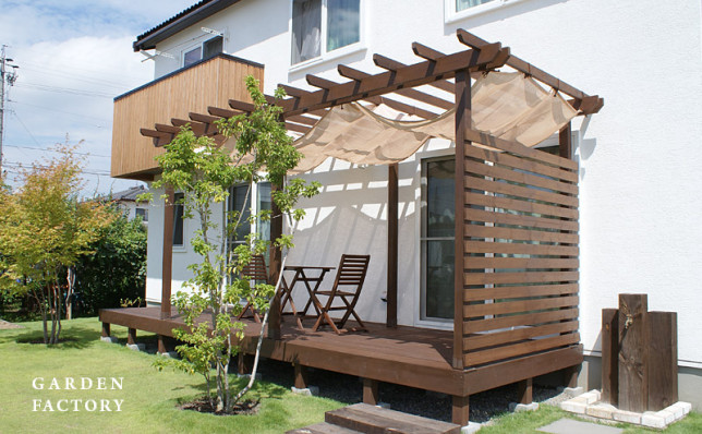 こちらはウッドデッキの上にパーゴラをつけたものです。